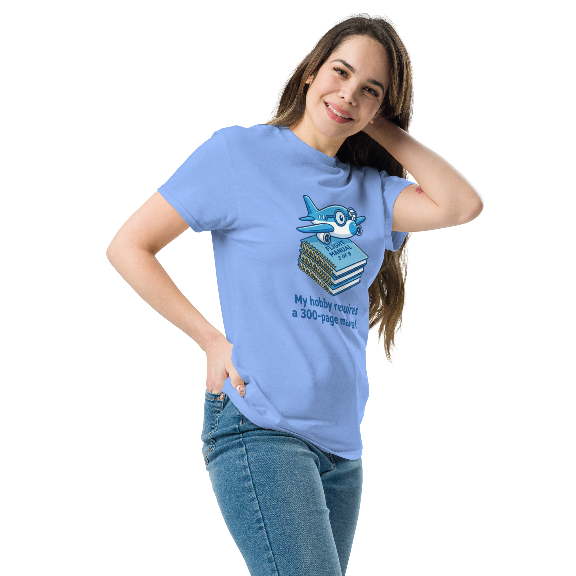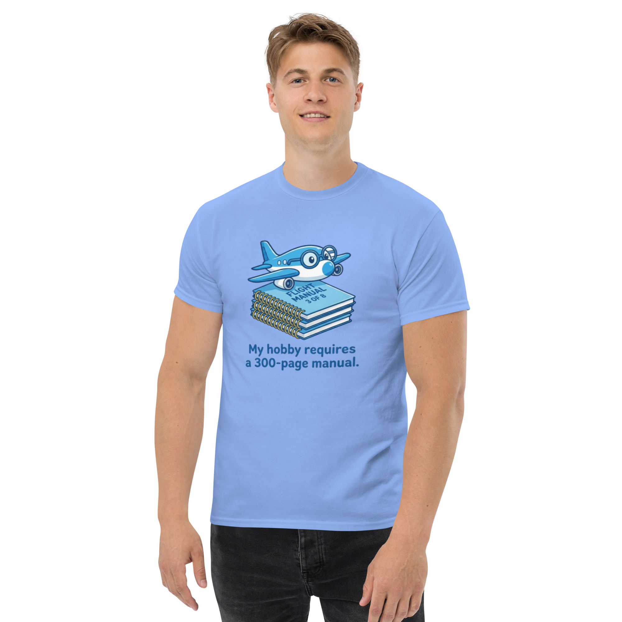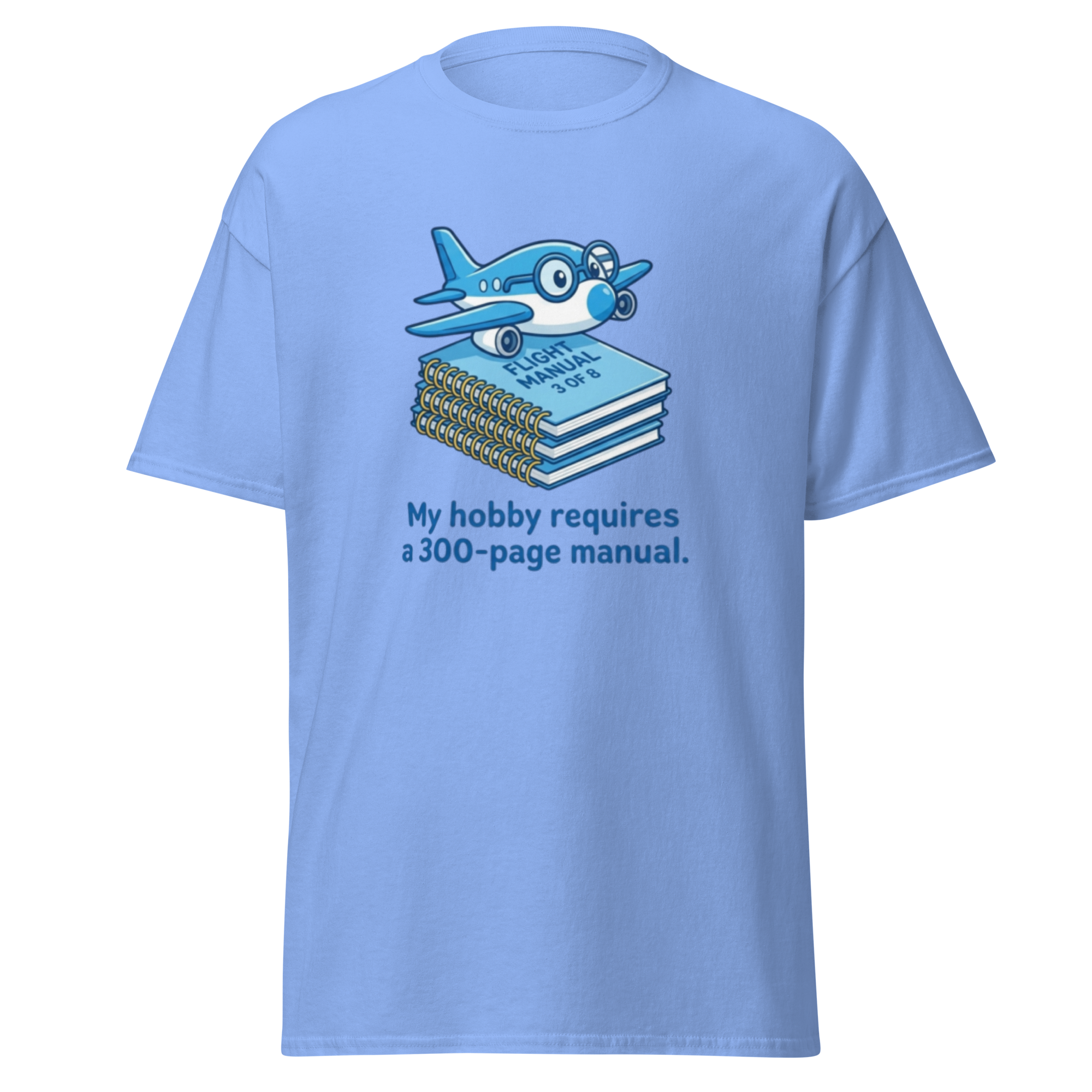 300 Page Flight Manual T-Shirt : Medium Light Blue
